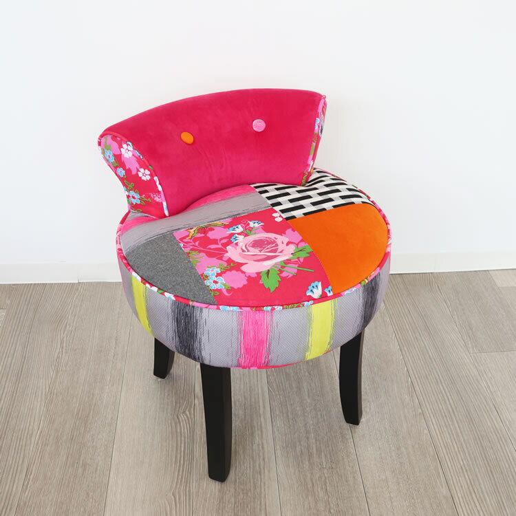 ファブリックのカラフルパッチワークがかわいいデザインカラフルチェアー(椅子)です。