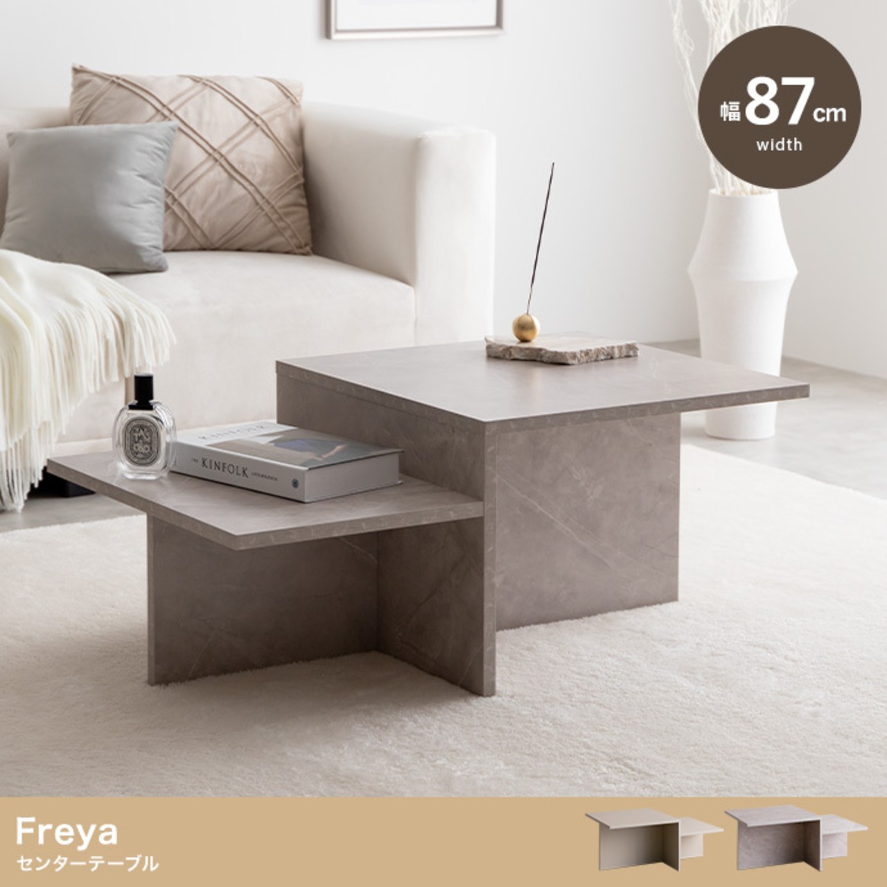 直線的なデザインと段違いの天板が目を惹く『Freya(フレヤ)』センターテーブル