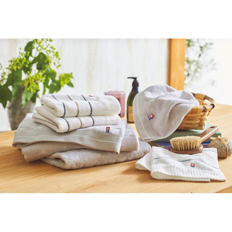 立体感と高級感があるジャカード織りの優しいタオル。凹凸のあるふっくらとした生地です。連続する丸い糸のラインで、つながる思い出を表現しています。