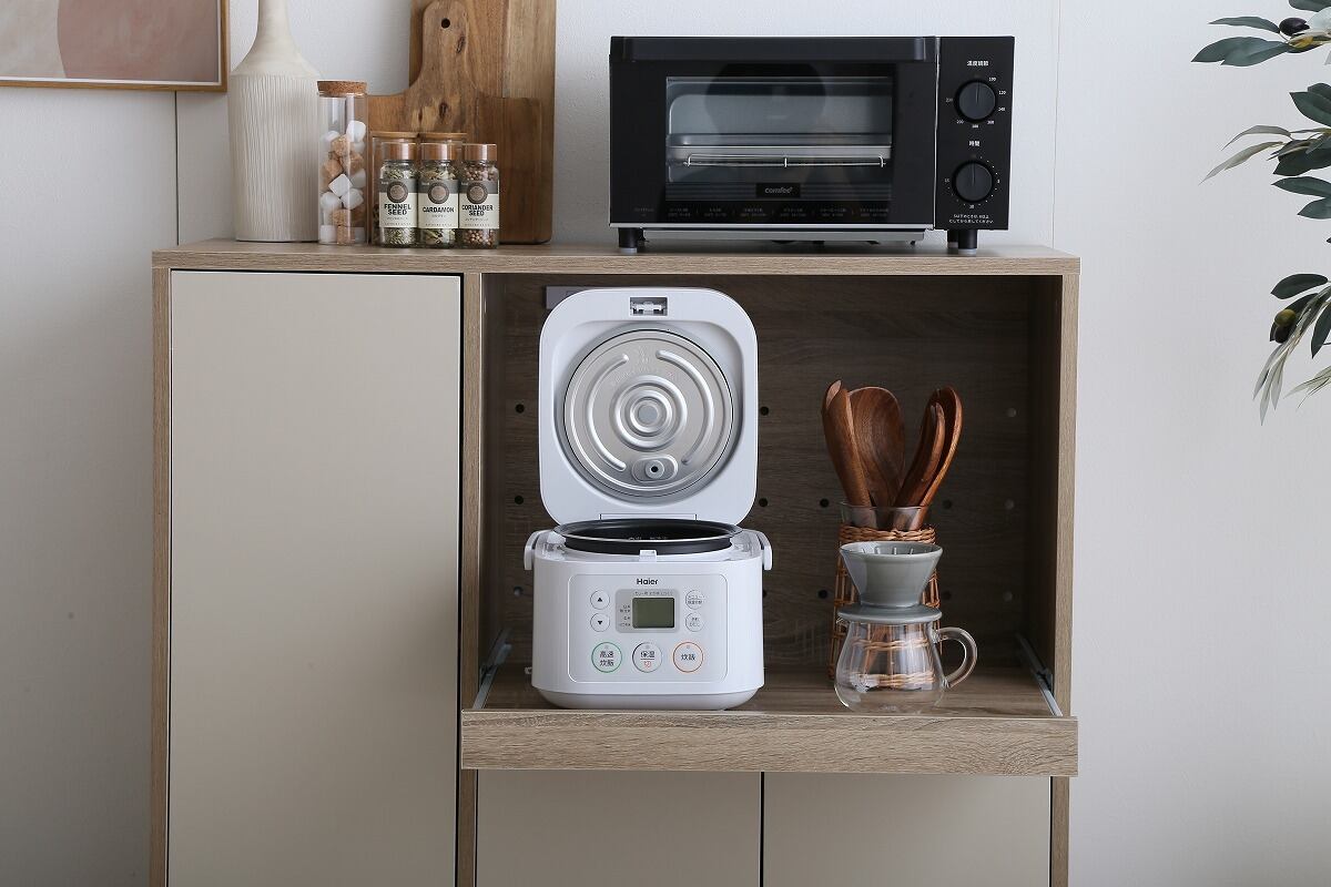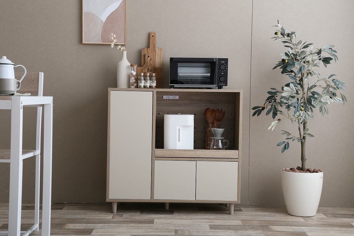 柔らかい木目調のナチュラルと明るいホワイトから成るバイカラーがおしゃれな『Erin(エリン)』のレンジ台